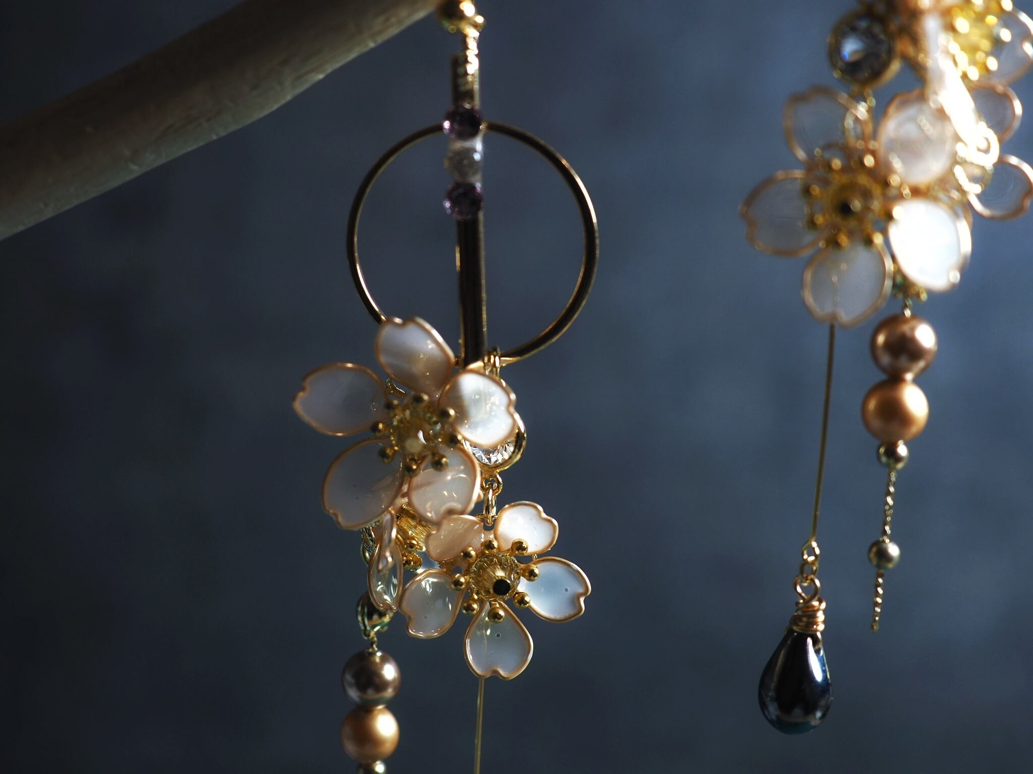 上品にしゃらりと垂れ下がる桜の花を身に着けて