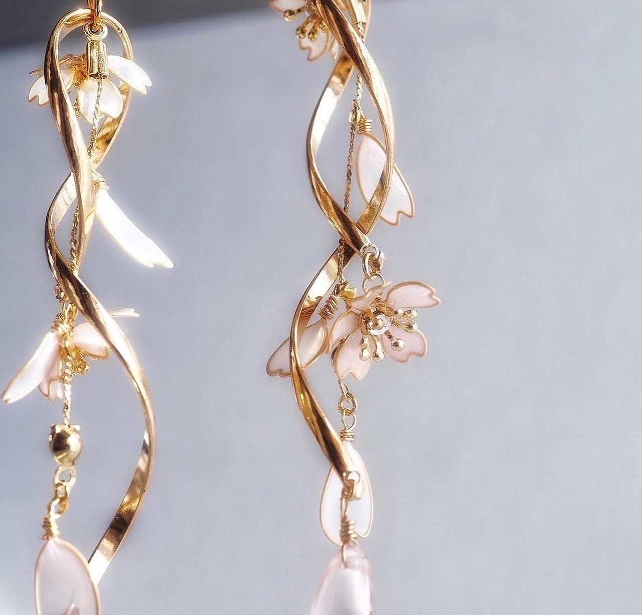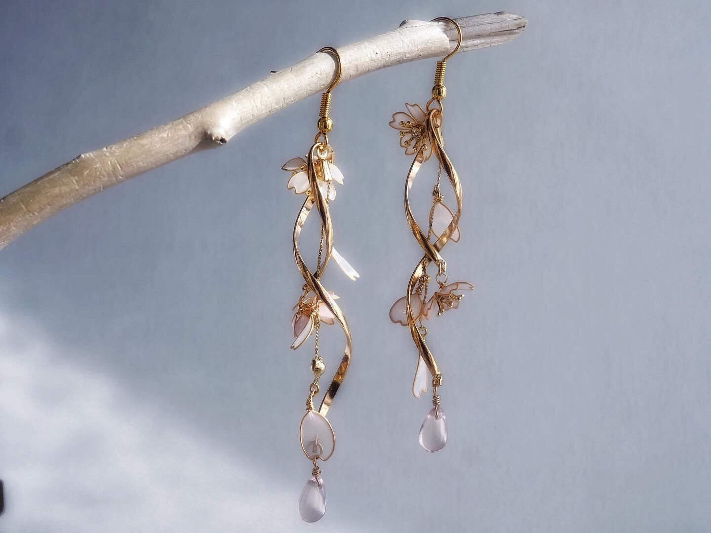 満開に咲いた桜が最後に風に吹かれて散っていくような、そんなイメージで耳飾りを仕立てました。