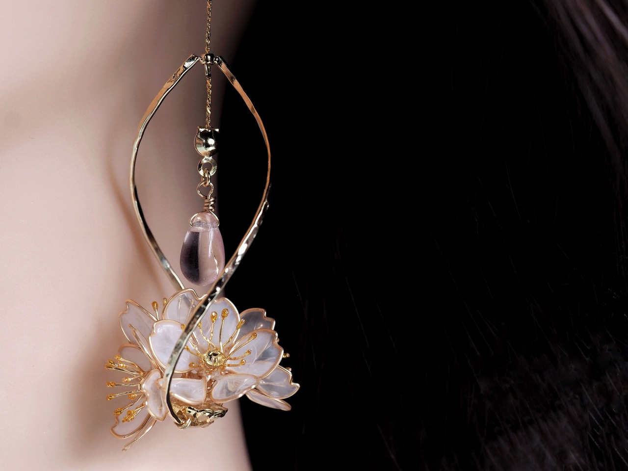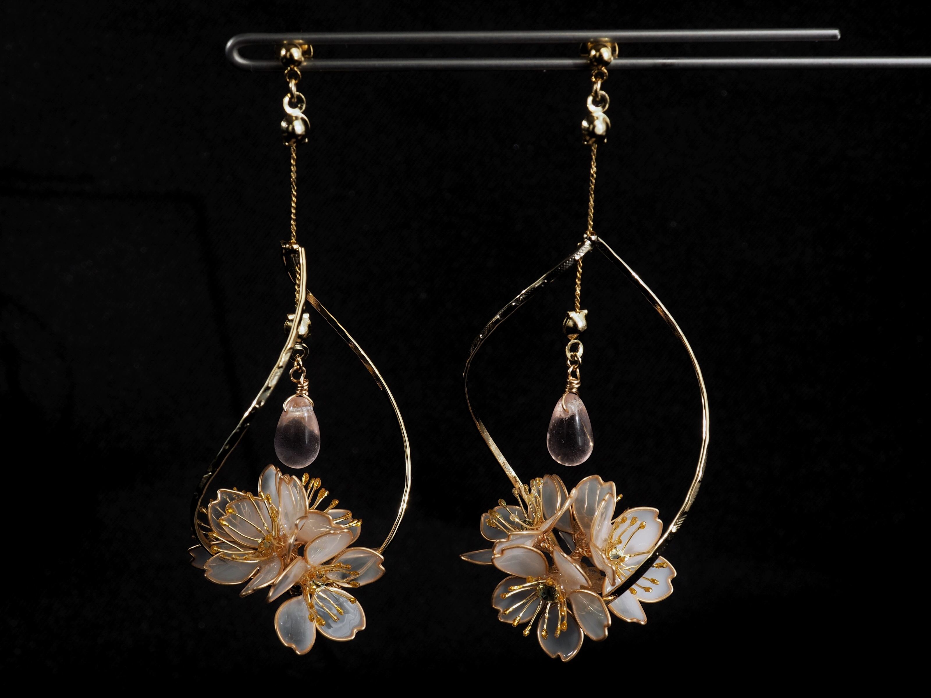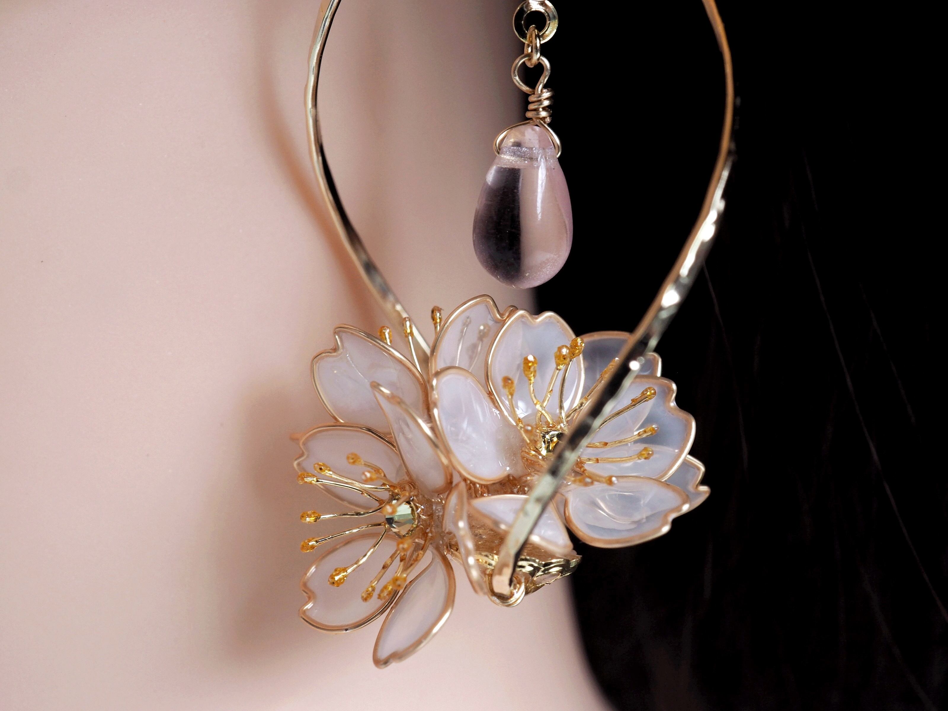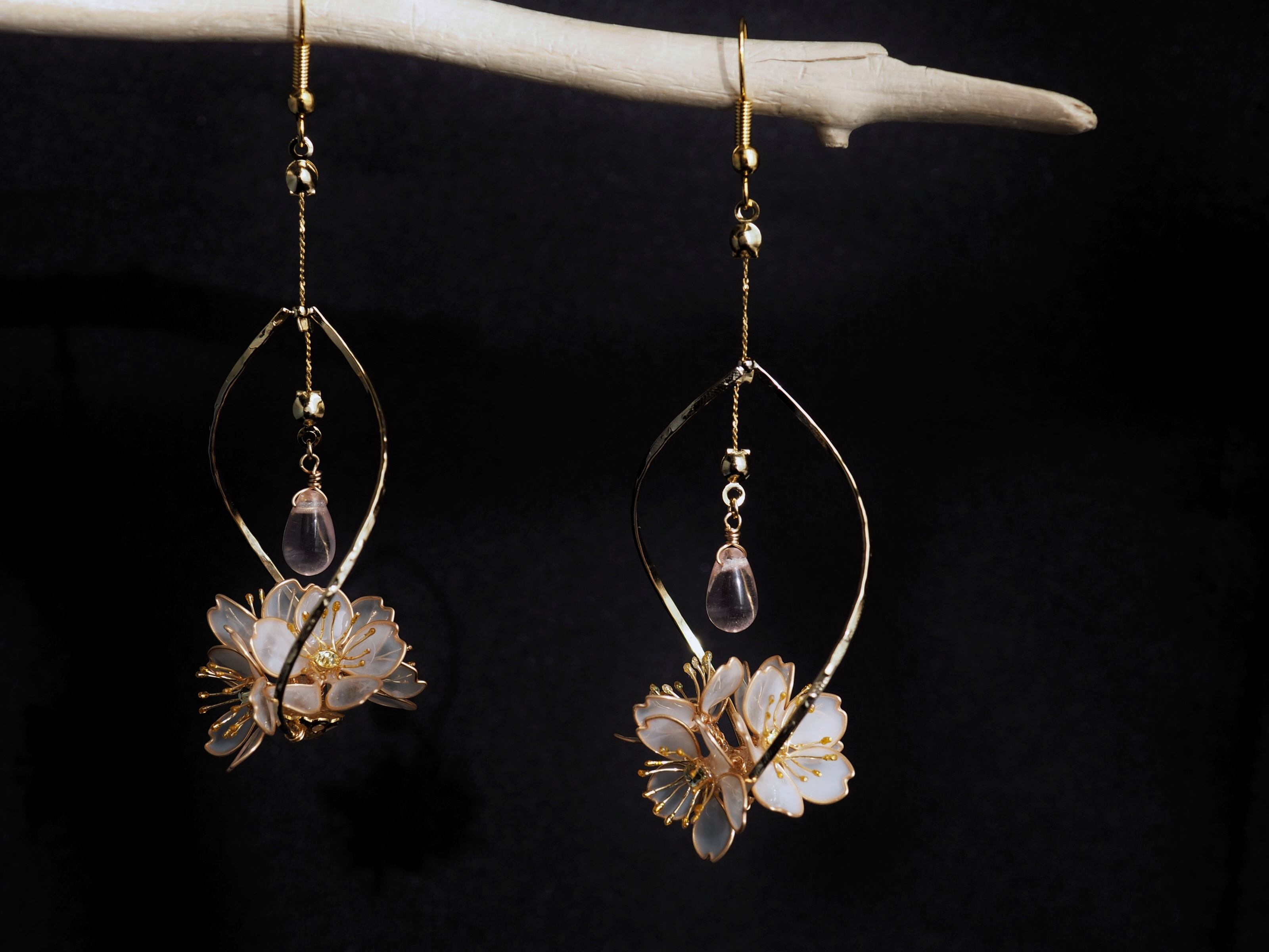 心がけてみました。1つずつ手作りで花を組み上げているので、完全に同じ耳飾りはひとつもありません。