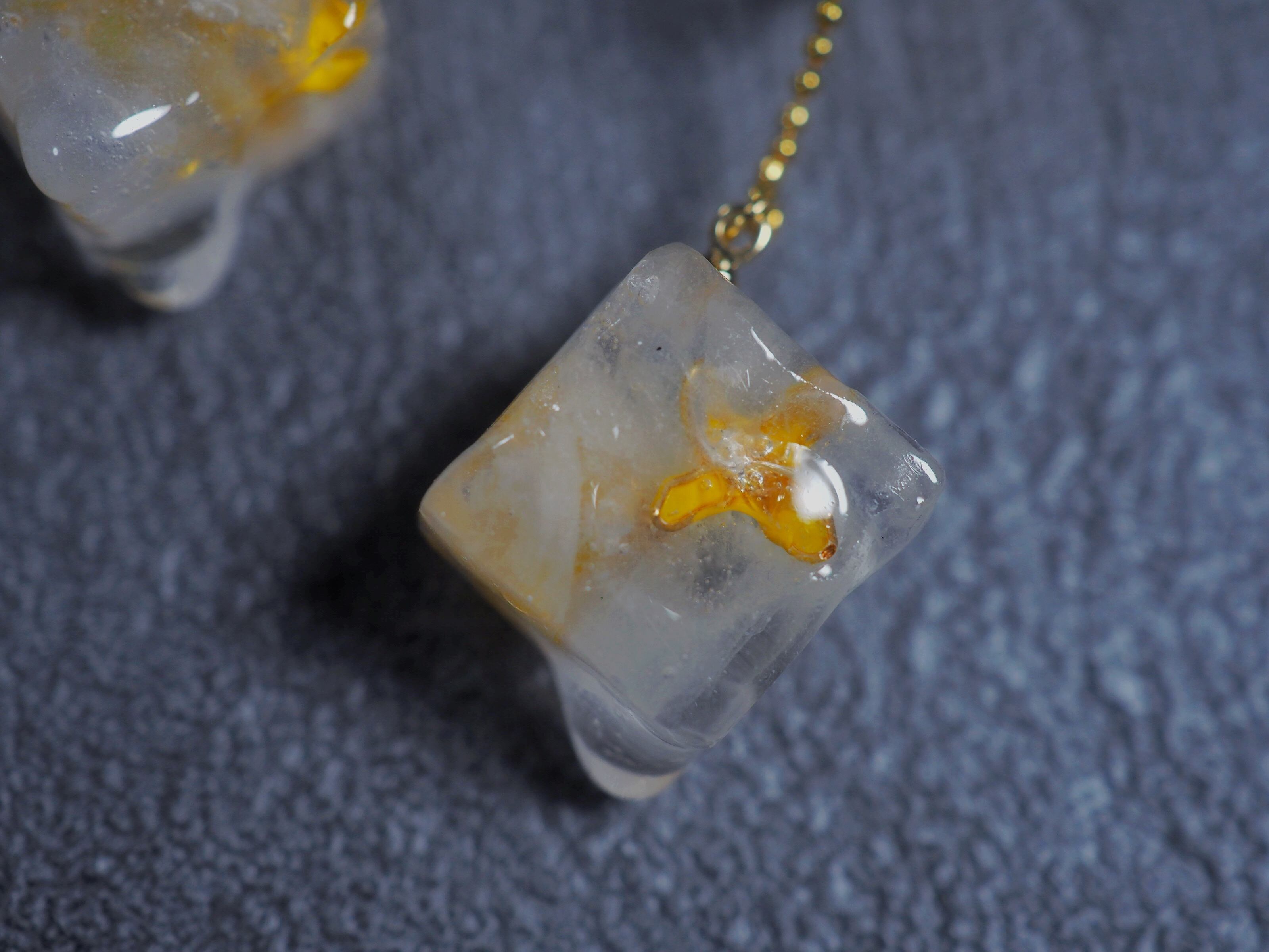 氷の中に閉じ込めた金木犀の花弁たち。