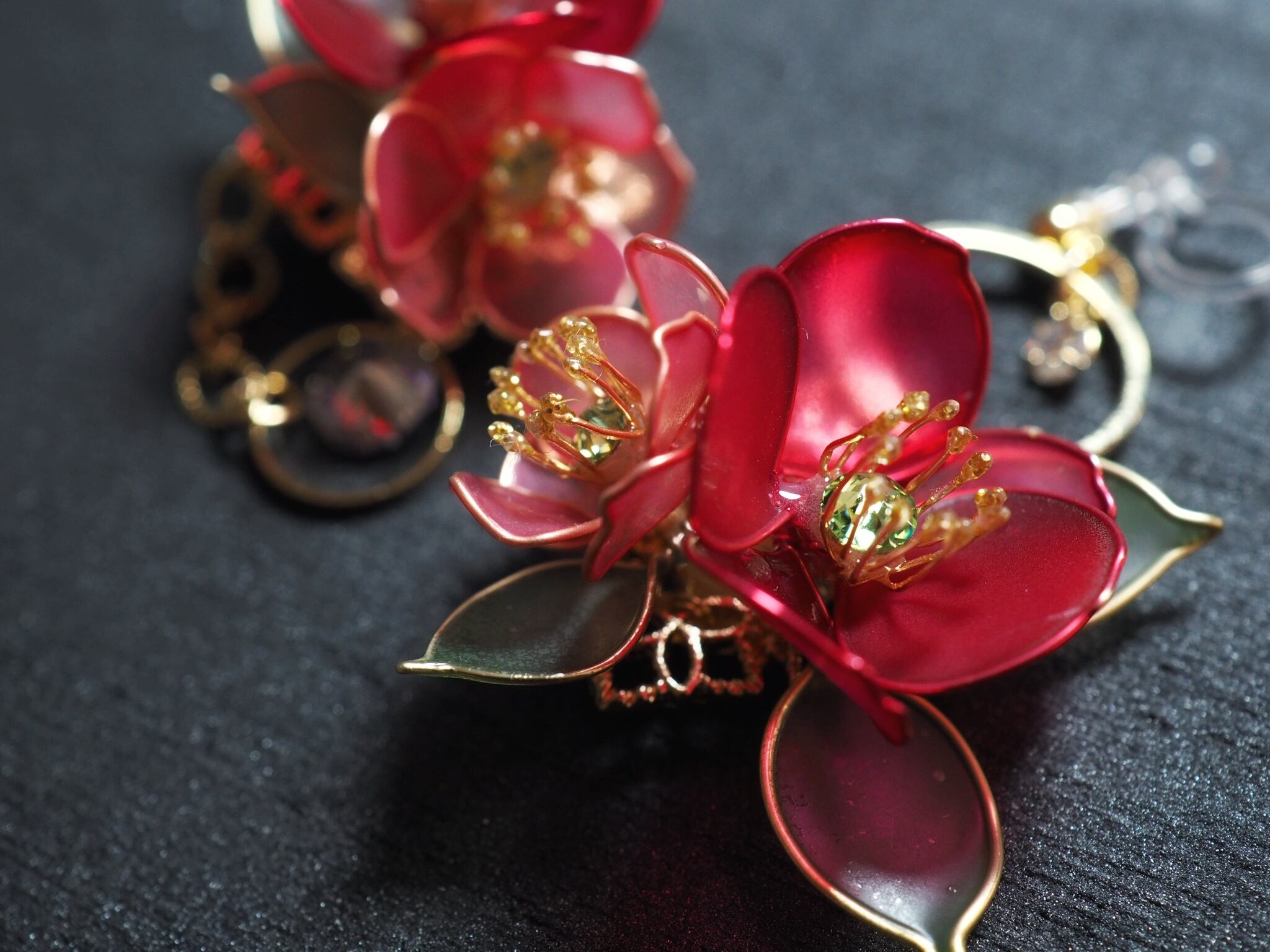 ・装着の際はなるべく花のモチーフに触れないようにして頂くと長持ちします。