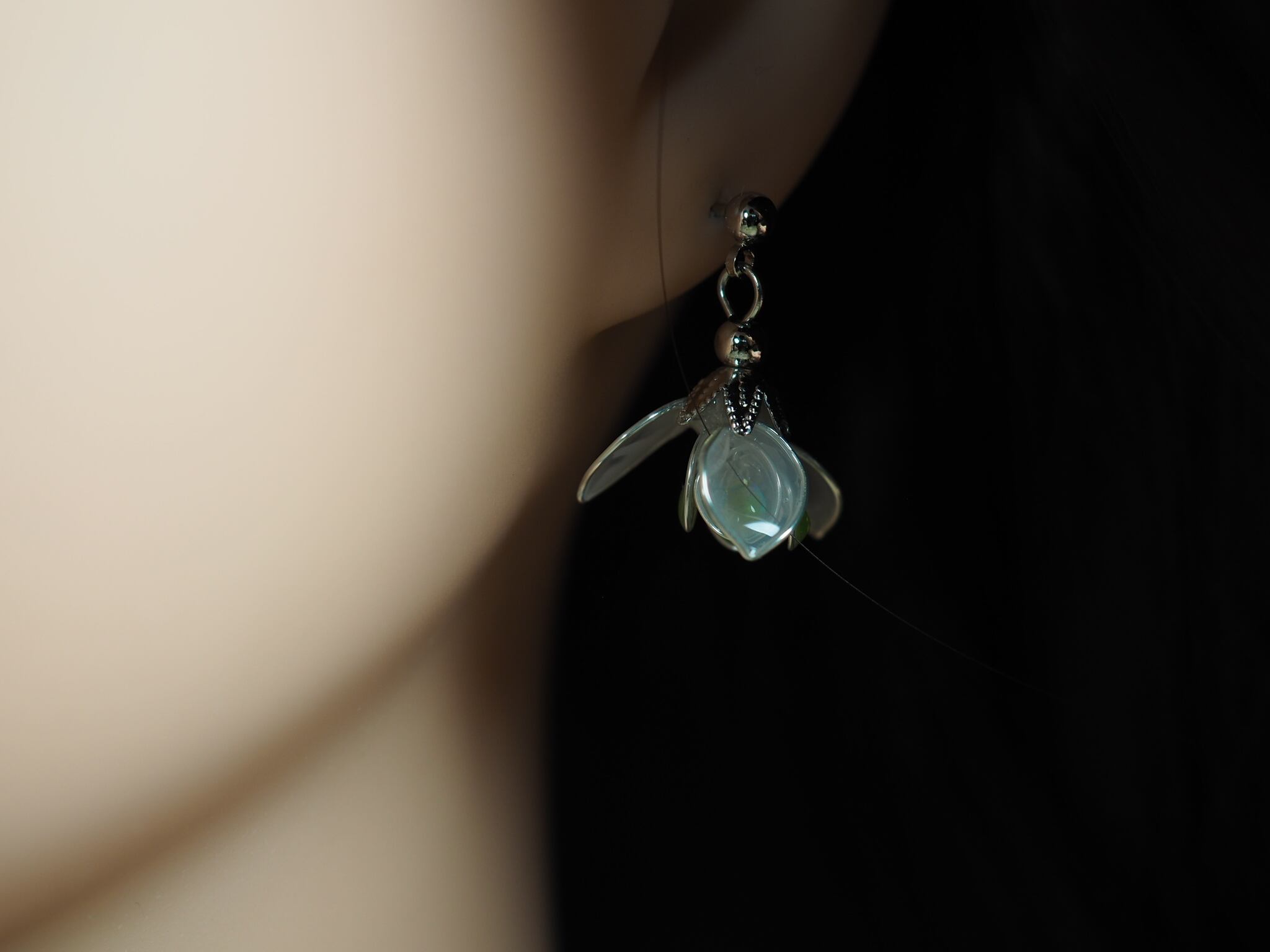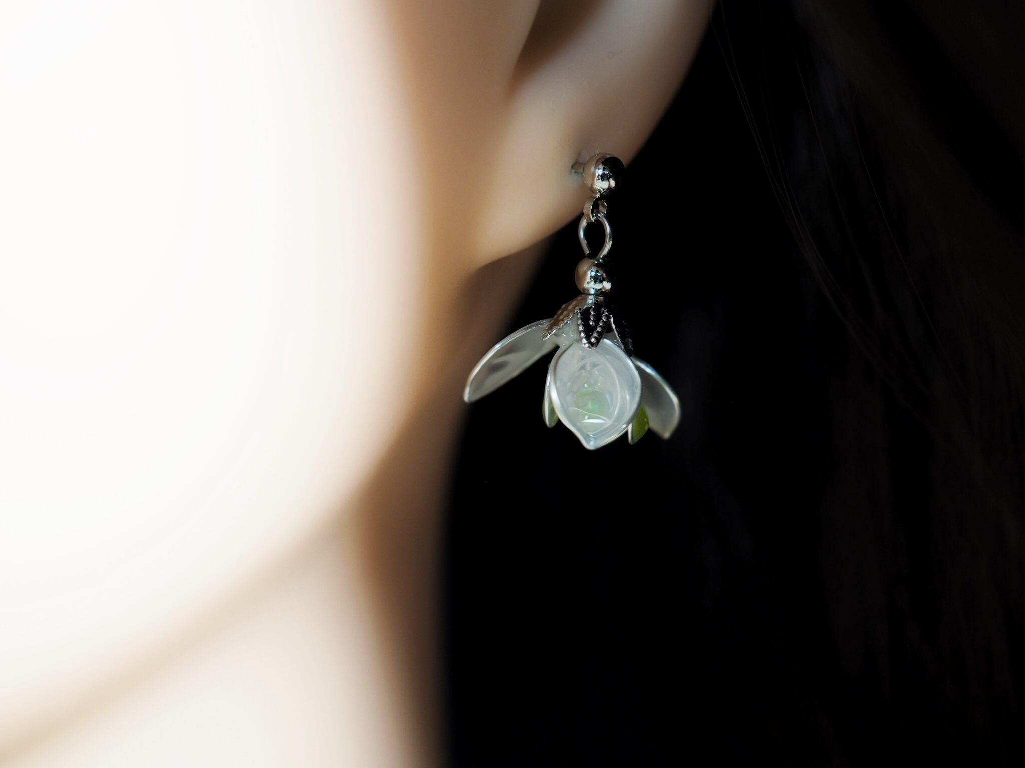 そんなスノードロップの花を耳元に飾って